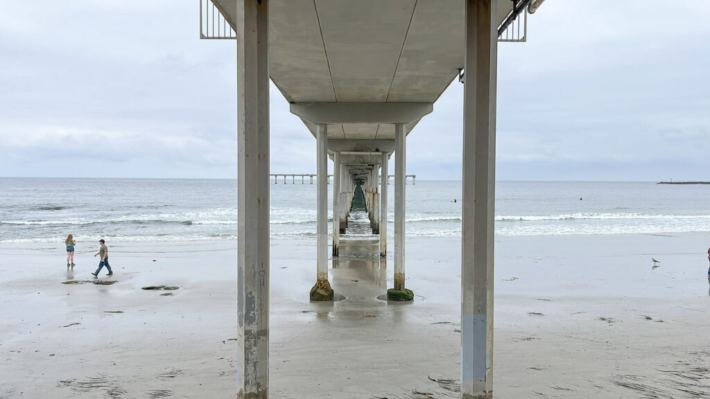 Ocean beach também tem um píer, mas é um píer de concreto – bem menos charmoso que o píer de Pacific Beach.