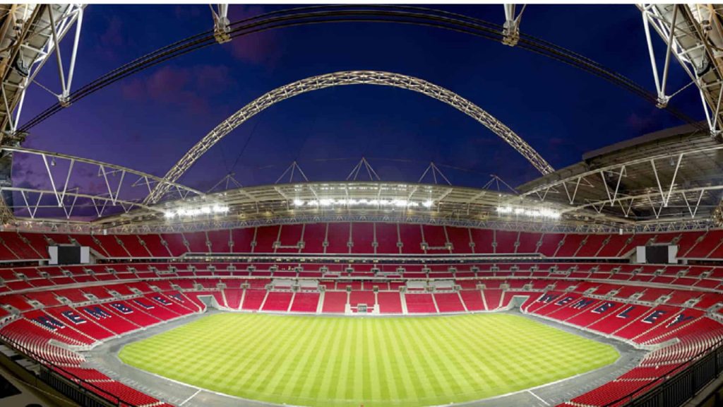 Com estilo moderno, o Wembley Stadium foi construído no local onde ficava um antigo estádio que foi demolido.